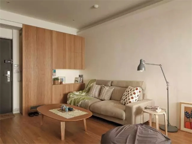 木質(zhì)的柜子更具有生活的氣息,旁邊就是通往臥室的門,推拉式的木門