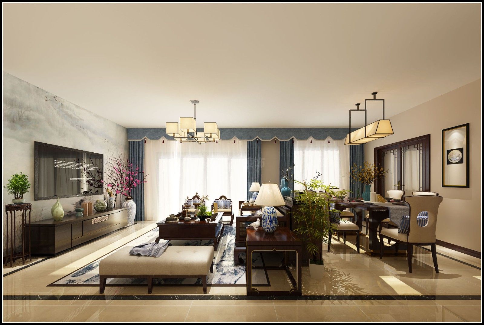 佛山101-200平米三居新中式風格裝修效果圖