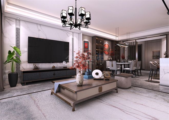 中山凱茵又一城三居新中式風格裝修效果圖