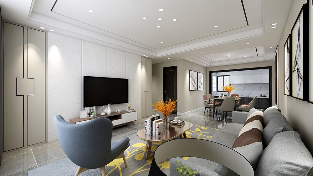 普洱盛景園三居現代簡約風格裝修效果圖